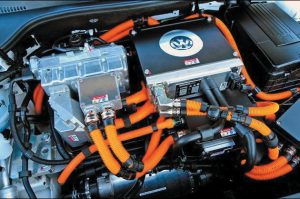 在電動汽車上,對于任何B級電壓電路中的帶電部件,其部件上都有高壓警示標識;導線的顏色表示特定的含義,鮮艷的橙色電纜用來警示有高壓電危險,對于一些橙黃色導線要引起注意,因為這可能有高壓危險。